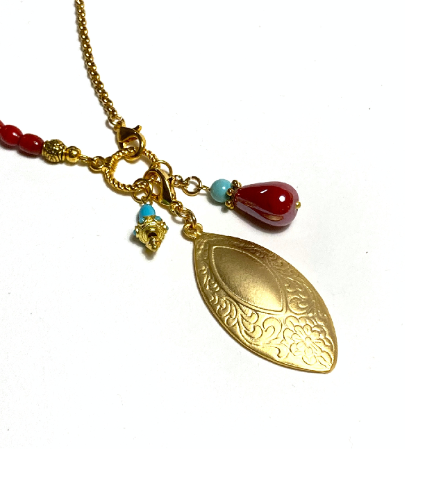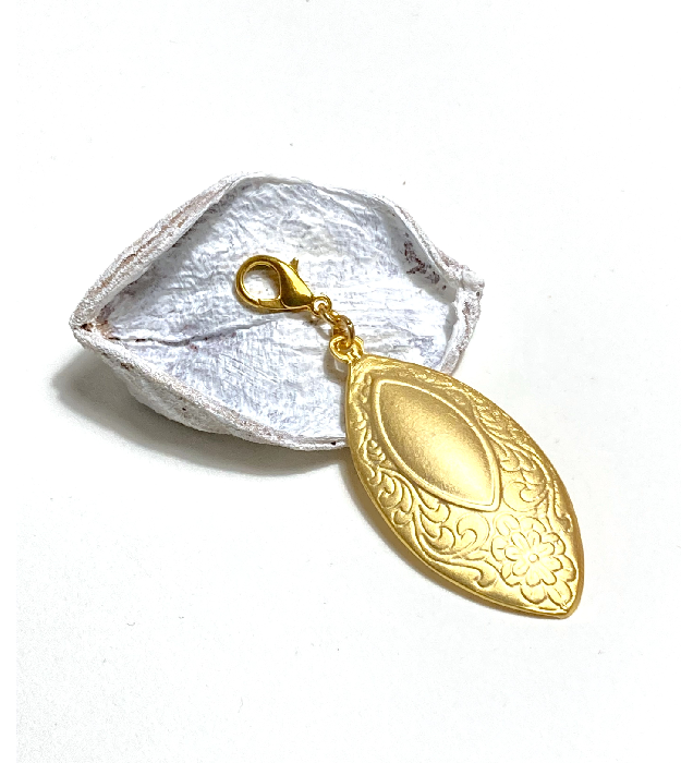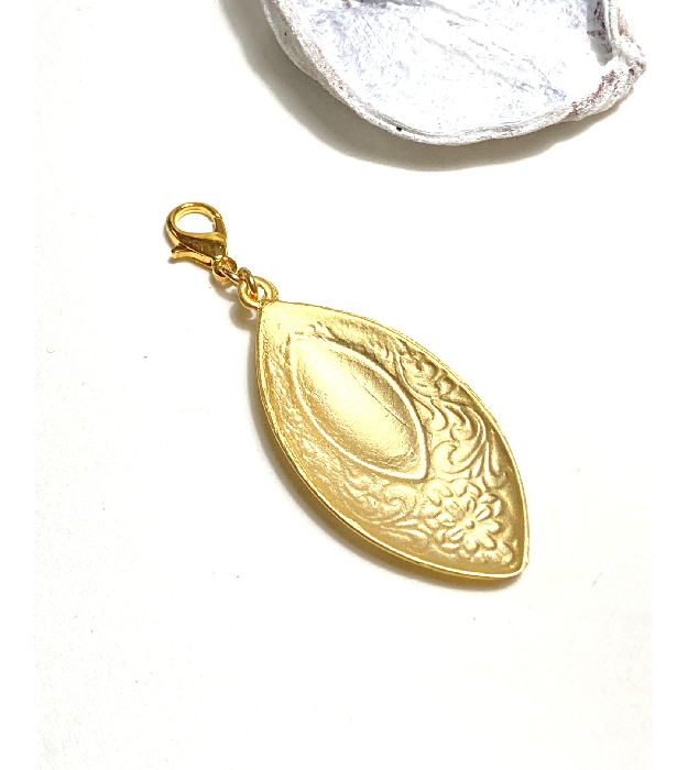 Geef je favoriete kettingen een uniek accent met deze prachtige Turkse mat vergulde boho hanger. Het is een langwerpig gedecoreerd ornament uit Turkije met een prachtige vorm in etnische stijl. Ik heb er een verguld RVS karabijnslotje aan bevestigd.