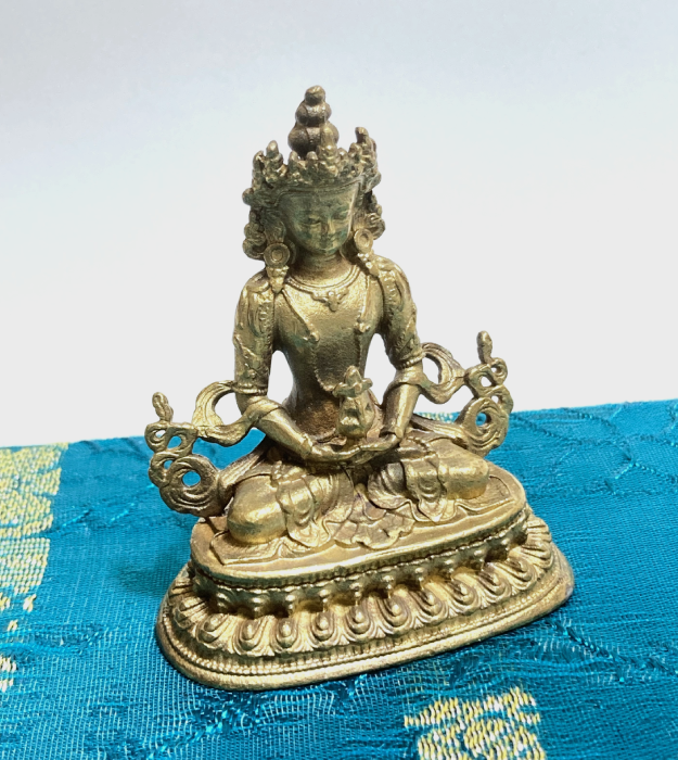 Deze Boeddha staat bekend als Amitabha (Oneindig Licht) en Amitayus (Oneindig Leven) en symboliseert compassie, innerlijke rust en spirituele bescherming. Een mooi symbool voor vrede en sereniteit bij je dagelijkse ritueel.
