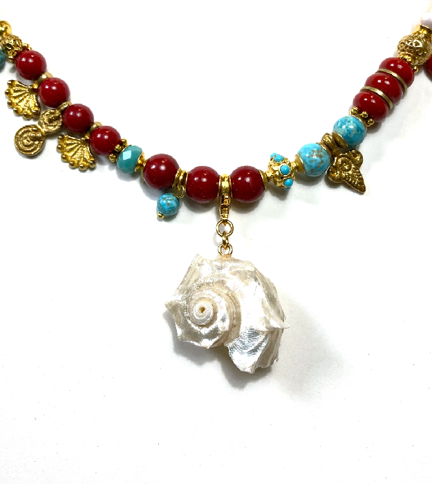 De schelp staat symbool voor bescherming, intuïtie en vrouwelijke energie. Parelmoer voegt hier een kalmerende kracht aan toe en staat bekend om zijn zachte, harmoniserende energie.